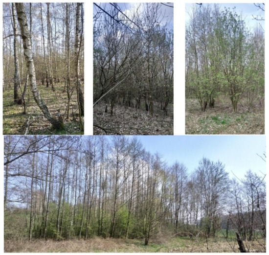 In Poland, 78.4% of forests are administrated by The State Forests National Forest Holding, 17.4% are private forests and the rest of the forested areas there are national parks and other communal or public forested grounds. Forest cover in Poland, concerning the Increasing Forest Cover National Program [], is to constitute 30% of the Poland area, and in the year 2050, it will be pronounced to 33%. It should be added that the actual area of forested grounds is higher than shown in the database of the Central Statistical Office [,]. Forecasts of the forest cover growth and plans for afforestation in Poland do not consider the terrain of forest succession—the process is beyond the reach of any control. Commonly, secondary forest succession areas are not specified in cadastral databases as forested grounds because an inventory of the land use is not done often. The forest succession terrains are frequently and constantly figured in cadastral data as agricultural lands. This problem is usually related to grounds located adjacent to the forest lands.