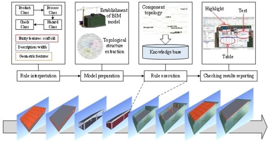 The widely-accepted method for dividing automatic safety checking stages was proposed by Eastman, who divided automatic safety checking into four stages []. Some studies have pointed out that safety correction should also be a part of safety checking []; as a result of safety checking, this study includes it in the result reporting stage by proposing preventive measures.