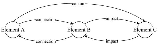 Following this, the BIM model is transformed into a network diagram for storage through the topology. The topological relationship between BIM elements can be divided into three categories: impact, connection, and contain. The elements extracted from BIM model are simplified as points in the graph, and the relationships between elements are simplified as connecting lines, as shown in Figure 2.