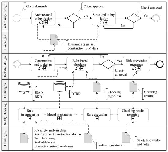 Construction is a labor-intensive industry with a high accident rate. Considering China as an example, according to statistics from 2019, there were 773 housing and municipal engineering safety accidents, and 904 deaths; compared with statistics from 2018, this is an increase of 5.31% and 7.62%, respectively []. In addition to the complex process and high labor intensity of the construction stage, the lack of safety checking in safety design is also a key factor in the deterioration of this situation []. Evidence showed that in the pre-construction stage, design for safety (DFS) can greatly reduce the likelihood of workers being exposed to risky situations in the actual construction environment []. A sound construction safety checking method is a key guarantee for controlling engineering risks and improving safety performance on site.