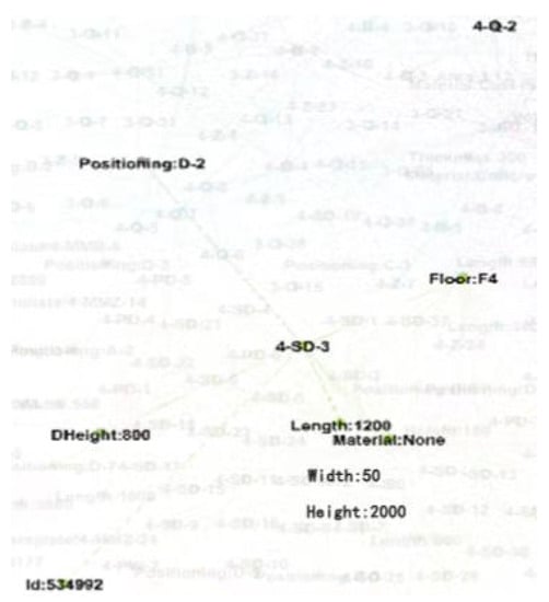 The A-CTG and R-CTG extracted from the BIM model are combined to form a dynamic topological relationship database (DTRD). In the database, all entities are regarded as nodes, including components and their attributes. The relationship between entities is regarded as an edge, and the graph composed of nodes and edges forms a topological graph. The topological graph represents the position relationship between the nodes. The shape, size, and distance of the entity have no relationship with the node distribution.