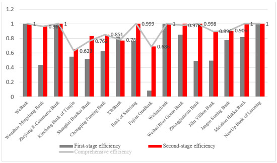 4.3.2. Stage Efficiency and Comprehensive Efficiency Analysis of Internet Banking in 2019