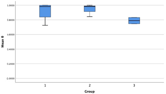 It can be seen from Table 5 that the mean value of comprehensive efficiency is p = 0.257 > 0.05. So, the null hypothesis is not rejected and it is concluded that the Internet banks distributed in the three major economic belts have no significant difference in total efficiency values. The box diagram of Figure 7 shows that the distribution range of the average comprehensive efficiency of Internet banks in the eastern region is the widest. Including the distribution range of the average comprehensive efficiency of the central and western regions and the number of Internet banks in the three major economic belts: eastern region > central region > western region.