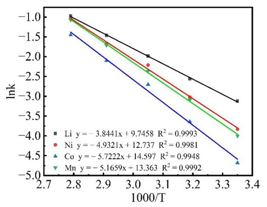 3.2.4. The Effect of Reaction Temperature on Leaching Rate