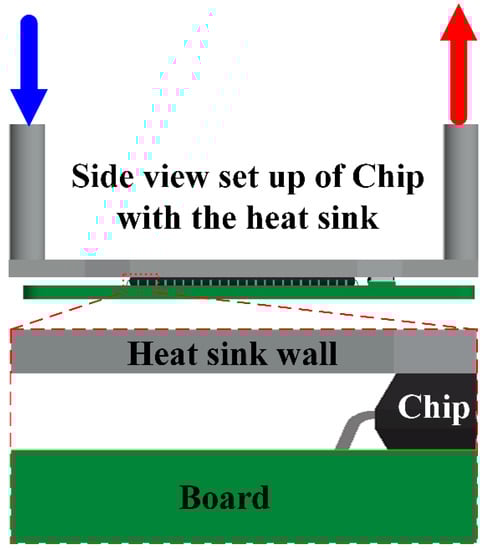 A schematic diagram of the proposed heat sink assembly with a chip in an integrated board.