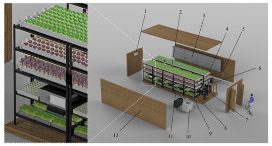 Agriculture is one of the core application areas of sustainability science []. The development of traditional agriculture is limited by factors such as land, environment, and climate [,], with more uncontrollable factors. While plant factories are controlled environment agriculture [], plant factories may become a competitive production technology compared to traditional horticulture []. Plant factories are sustainable in a range of ways, with lower CO2 emissions, less water use, and smaller footprints []. They are also less affected by extreme weather and environmental pollution, and can achieve high-quality output year-round.
