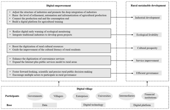 The theoretical framework for the digital village construction to promote a rural sustainable development.