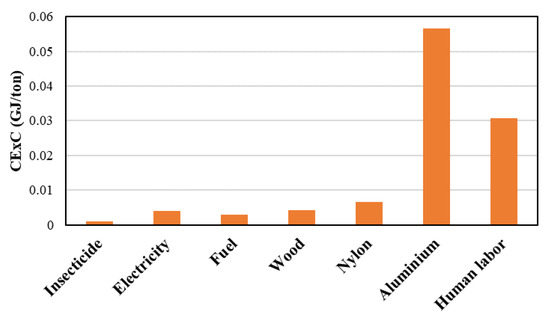 Figure 3. Cumulative exergy consumption (CExC) of inputs in wheat silo.