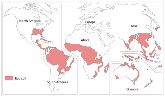 Distribution of red soil in different continents [14].