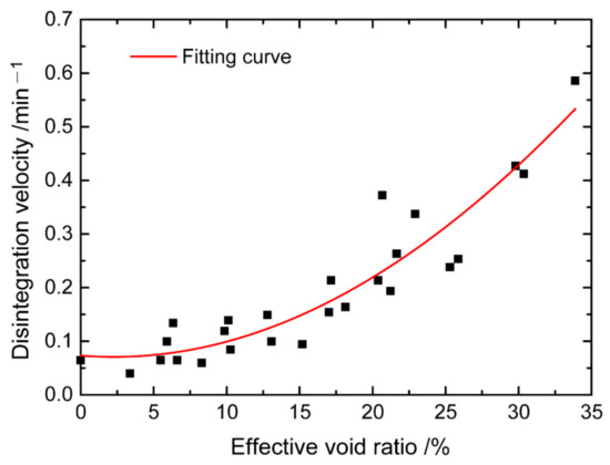 Relationship between the disintegration velocity and effective void ratio [61].