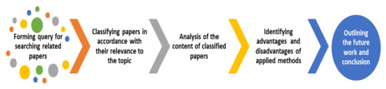 - The first step is a selection step that includes three important moments: time-frame, database, and keywords. As the ending point of the time-frame was selected as March 2022 when our investigations started. We expected to find results at the beginning of the time-frame. The origin of the paper was important when searching papers; thus, papers for our survey were selected from reliable Web of Science (https://clarivate.com/webofsciencegroup/solutions/web-of-science/ (accessed on 10 January 2022)) and Scopus (https://www.scopus.com/ (accessed on 15 January 2022)) databases. In order to properly conduct a search, Boolean operators were used alongside with topic-related terms and phrases.For searching, the following keywords were used: “poverty and AI”, “poverty” AND “AI”, “poverty and machine learning”, “poverty” AND “machine learning”, “poverty and deep learning”, “poverty” AND “deep learning”. In this stage, overall, we collected forty-three papers.