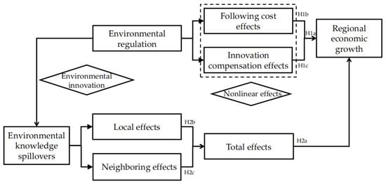 To sum up, the theoretical framework of the impacts of ER and EKS on regional economic growth is shown in Figure 1.