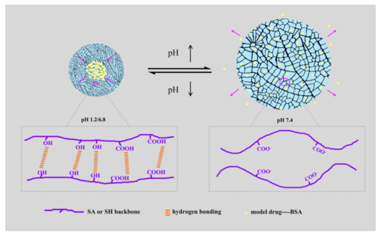 Schematic mechanism of pH-responsive release behavior of the composite hydrogels.