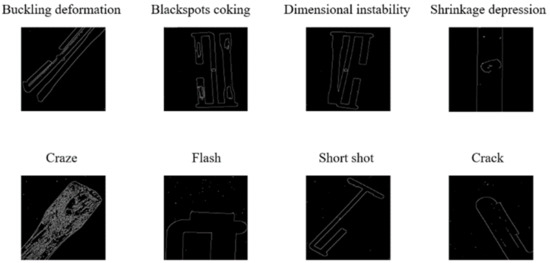 - This paper summarized a theoretical system for processing fault classification for plastic part failure to address the issue of processing an image dataset of injection-molded plastic components. This system emphasized the theoretical connection between the eight primary types of plastic part defects and the types of injection molding system failure. The dataset was sorted into nine categories using this theoretical framework (eight defective categories and one qualified category). The image dataset processing provides a realistic foundation for subsequent matching and detection operations. To fully recover fuzzy images, this paper firstly established an image degradation model in this study using a blind deconvolution approach. The gamma transform method was used to process the dataset in greyscale, the random noise of the dataset was removed by using a median filtering algorithm, and the geometric contour data were retrieved by the Canny algorithm for the subsequent matching procedure.