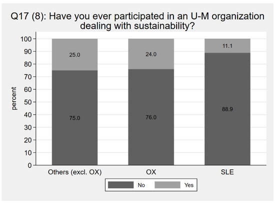 Participation in campus organizations dealing with sustainability by residence group.