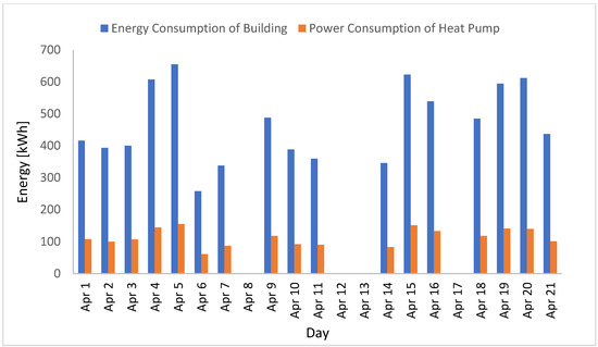 Energy consumption of the building and ASHP between 1 April and 21 April (2021).