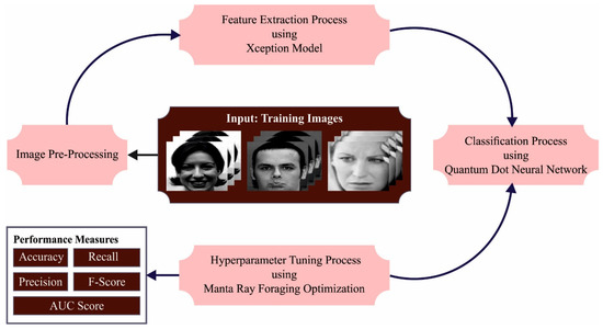In this study, we have introduced a new TLDFER-ADAS technique for smart city environments. The TLDFER-ADAS technique aids in proper driving and determines the emotions of drivers, which assures road safety. The TLDFER-ADAS technique encompasses a sequence of operations like contrast enhancement, Xception-based extracting features, QDNN-based emotion classification, and MRFO-hyperparameter tuning. Figure 1 defines the overall block diagram of TLDFER-ADAS system.