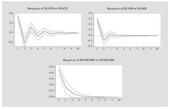 | Period | DLNCD | DLNEC | DLNPCGDP | DLNCD | DLNEC | DLNPCGDP | DLNCD | DLNEC | DLNPCGDP |