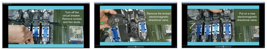 The maintenance training methods of the three training platforms are different. The trainees who train based on the actual equipment all use the traditional tool (TT) and are named as the TT group. Gao summarized the traditional tools as: Toolbox talk, video presentations, text-based handouts, practical training, and teaching seminars [1]. As shown in Figure 2, in this experiment, the trainees watched the video first and then performed the actual operation.
