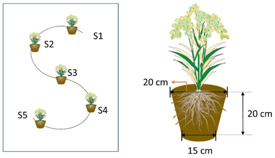 Heavy metal (HM) pollution in agricultural soil caused by mining, industries and conventional agricultural practice is becoming increasingly evident, which has threatened food security and human health. Arsenic (As) and cadmium (Cd) have been shown to be two primary HMs causing soil pollution in China, and have polluted 2.7% and 7.0% of the surveyed soils according to their environmental quality standards for soil in China, respectively [1]. Rice plants are more likely to enrich As and Cd than other food crops, because of their special living environment and unique physiological characteristics [2,3,4]. Being the staple food for over half of the world’s population, rice is the major source of As and Cd in humans in addition to drinking water, thus becoming the major chronic exposure route affecting human health via diet [5,6].