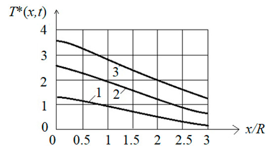 Using Equations (21) and (22), calculate the dimensionless temperature parameterfor different x and t. The results of its calculations at R = 0.4 m are graphically represented inFigure 2.