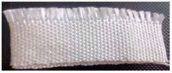 GFRP was chosen for this study due to its availability and low cost compared to the other FRP types. GFRP is becoming a sustainable construction solution due to its outstanding properties. GFRP has resistance to chemicals, environment, heat, and salt. It has a high strength-to-weight ratio. Furthermore, GFRP is considered a distinguished insulation and low-cost strengthening material [37]. The used GFRPs sheet (SikaWarp-430 G) was a bi-directionally woven, designed for installation using the dry or wet application process, as shown in Figure 3; the properties of glass fiber sheets and epoxy resin are listed in Table 3 and Table 4, respectively. The resin was mixed in accordance with the FRP system manufacturer’s recommended procedure.