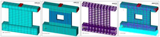 Mohammad and Mansour [25] studied the effect of openings on the behavior of a composite steel plate shear wall CSPSW through the experimental test and finite-element simulation in ABAQUS and proposed different methods to reduce the negative effect of the opening on the behavior of the system. They found that including an opening to CSPSW reduces the system’s stiffness and energy absorption capacity, which increases displacements. However, using a reinforcing steel plate around the opening is more efficient and helps to restore some of the overall stiffness lost.