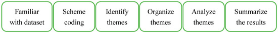 Thematic analysis (TA), an inductive qualitative method, provides a new way of probing the empirical world by identifying themes [53,54,55,56]. Additionally, TA potentially reduces voluminous data into clearly articulated thematic statements and is beneficial when a scholar seeks to depict a detailed picture of a focused phenomenon [55]. Therefore, TA is chosen as a primary method to describe the studied phenomenon and contributes to the emergence of new theoretical directions of the empirical world. The framework of TA proposed by Braun and Clarke is accepted for its validity in qualitative tourism research [56]. Figure 1 shows six steps with partial adjustments. It is noted that the TA process would need to be recursive to identify possible themes. In brief, TA is utilized to code the cases under the guidance of the SLF, revealing the effects of PPT on livelihood capitals and outcomes. The process is performed with the software of NVivo 12.
