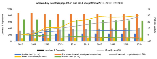 Africas’ key livestock population trends and land-use changes (Source: Authors’ calculations based on FAO 2020 statistics).