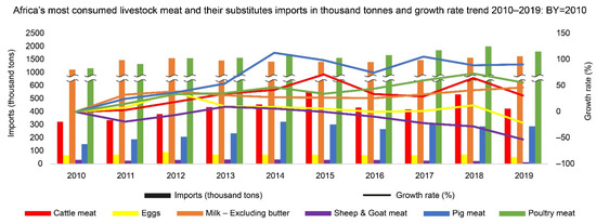 Africa’s livestock meat and substitutes imports growth (Source: Authors’ calculations based on FAO 2020 statistics on trade).
