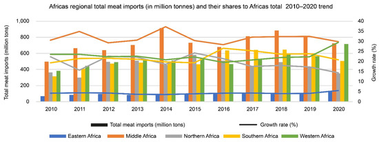 Africa’s meat import at the regional level (Source: Authors’ calculations based on FAO 2020 statistics on trade).