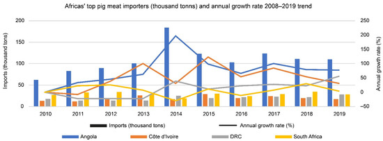 Africa’s top pig meat importers trend, 2008–2019 (Source: Authors’ calculations based on FAO 2020 statistics on trade).