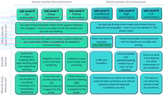 The levels of Driving Automation from the perspective of the driver of the vehicle (based on the SAE Standard J3016 []).