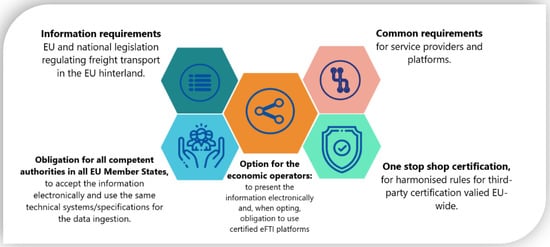 - Regulation (EU) 2020/1056 of the European Parliament and of the Council of 15 July 2020 on Electronic Freight Transport Information (Text with EEA Relevance). Off. J. Eur. Union. 2020. Available online: https://eur-lex.europa.eu/legal-content/EN/TXT/?uri=CELEX%3A32020R1056 (accessed on 27 June 2022).