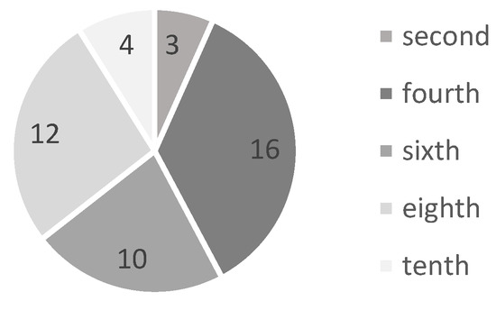 Τhis study focused on a group of 45 subjects attending the undergraduate program of Italian Language and Literature at Aristotle University of Thessaloniki with an average B (B1–B2) independent user language level. Level B1 is a prerequisite to pass the national exams in order for someone to become student in the department of Italian Language and Literature at Aristotle University of Thessaloniki, in Greece. Students had all completed the first year of their studies (Figure 3), as well as successfully completed the introductory course of linguistics, including introductory lectures on morphology. However, none of them had attended courses on the morphology of the Italian language, regardless of the semester of study, since attending the afore-mentioned course was not compulsory.