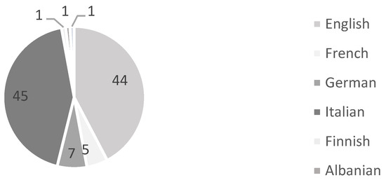 Almost all (44 out of 45) students participating in this research were trilingual, while all students were multilingual. In addition to Greek, which is their first language, they speak Italian and English. Less than 10% of the students who took part in this research speak other foreign languages, such as German (7 out of 45) and French (5 out of 45). One student also speaks Albanian, another Finnish, while a third one Turkish (Figure 4).