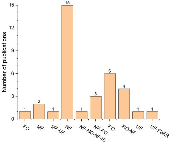 | NF-RO RO-NF | - | PA/FS | Dead-end | 200 Da (NF) | - | 20–30 (NF); 50–60 (RO) | Germany (S) | 1900 | 8.01 | - | - | 5–120 | - | 2018 | [189] |