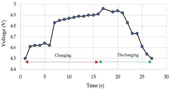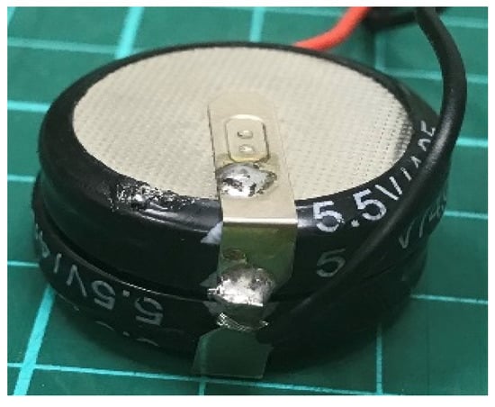 The series of two units of 5.5 V 5.0 F supercapacitor is shown in Figure 8.
