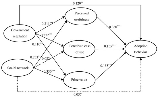 The focus of our research is on the mechanism and path by which government regulation impacts farmers’ AGPTs, according to the TAM. More specifically, we decided to investigate how government regulation influences farmers’ AGPTs adoption behavior through mediating variables, namely perceived usefulness, perceived ease of use and price value. Here, we proposed that: