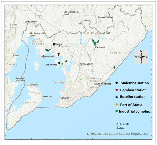 The three air monitoring stations located in Botelho, Malembá and Gamboa regions located in Todos os Santos Bay, Bahia, Brazil.
