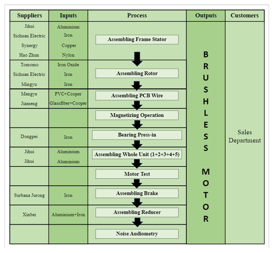 SIPOC stands for Supplier, Input, Process, Output, and Customer. SIPOC is a tool that explains the overall flow of business processes from suppliers to customers, from left to right [14]. In this research, the SIPOC diagram is shown in Figure 2, which describes the brushless motor.