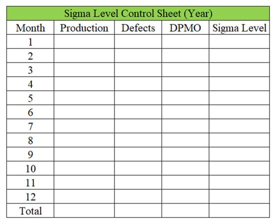 This Sigma Level control sheet is used to control the company’s Sigma Level on brushless motor products for each month. The goal is to find out what changes occur every month and whether the production process has decreased performance or increased performance. The form of the Sigma Level Control Sheet is shown in Figure 16.