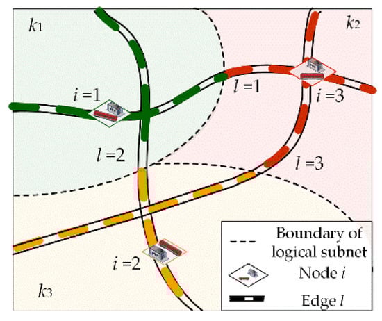 As shown in Figure 3, the example network is divided into 3 logical subnets of different rescue jurisdiction regions, i.e., , where are the nodes equipped with professional rescue teams, relief trains to be dispatched, and emergency resource reserves. Additionally, are the edges composed of actual lines between adjacent nodes.