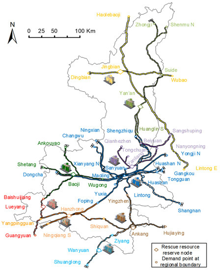Schematic representation of the emergency rescue transportation network.