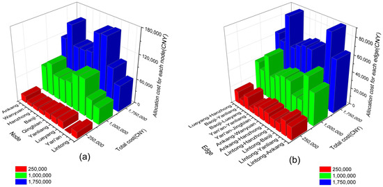 Relationship between total maintenance costs and allocation ratio. (a) Description of the allocation ratio of each node. (b) Description of the allocation ratio of each edge.