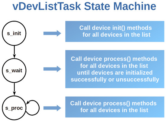 process() is to be called by the device manager through the DEV_IO device list task such that its state machine is scheduled to run concurrently. The