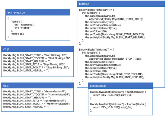 https://kb32ft.makerasia.com/getstart/kbide (accessed on 31 August 2022)) for coding education with the official and modified versions of the KidBright board and the Arduino. Although KB-IDE offers a block-based coding environment for programming the KidBright board, it does not support Thai and does not have the KidBright Engine. Thus, our software framework enables developers to create command blocks that support Thai and English and helps handle low-level hardware issues to support inexperienced learners who understand Thai and/or English. Altogether, these benefits help support the KidBright community in learning to program embedded systems worldwide.
