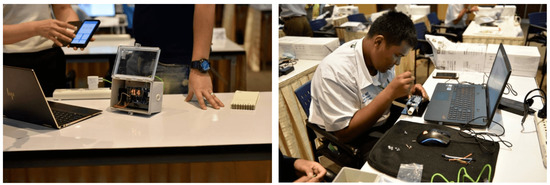 https://www.gravitechthai.com/ (accessed on 28 August 2022)). To support the growing demand for the KidBright board, mass production of the official versions and alternative versions is run by manufacturing companies under our guidance. In addition to all of these, we also collaborate with the Institute for the Promotion of Teaching Science and Technology (IPST), a government agency under the Ministry of Education (MOE), to develop seven KidBright-based supplementary curricula for teaching coding to students in grades 4 to 10 at school.