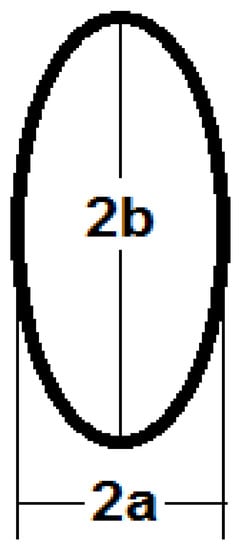 The more accurate perimeter of the elliptical cross-section as a function of its axes using the Ramanujan second approximation [] can be calculated as shown in the following equation: