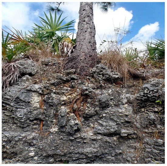 Slash pine (Pinus elliotti) roots indicating the root zone in Florida Keys limestone of 0.5–0.9 m depth. (Photo credit to Jennifer Possley).